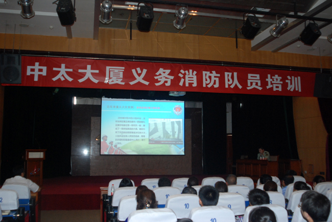 此次培訓由市消防支隊遲楊科長親自授課,大廈共有二十二個單位近百人參加,中太建設集團領導高度重視大廈的消防工作,總裁張明禮同志親臨現場并致辭。培訓過程中,遲科長首先從火災的視頻案例、如何提高四個能力建設、如何對寫字樓開展防火巡查及消防設施設備的維護等方面進行了詳細細致的講解,緊接著從貼近生活、實用性強的消防常識入手,講解了火災的預防、報警、撲救、滅火器的使用方法、人員疏散及逃生十三決。