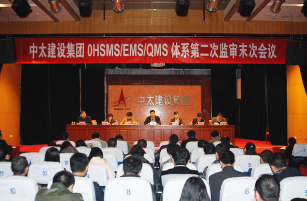 11月8日上午,中太建設集團召開OHSMS/EMS/QMS體系第二次監審末次會議,集團董事局副主席、執行總裁張明禮到會并講話。廊坊區域所屬各單位總經理、副總經理、總工程師、安全負責人、體系負責人、辦公室主任、內審員及機關全體人員參加了會議。