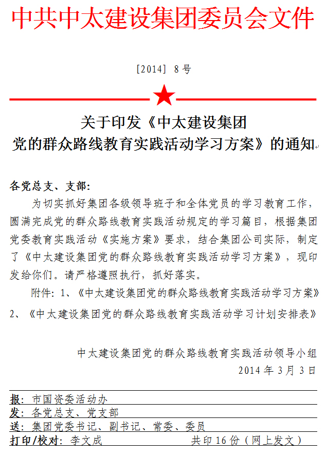 中太建設集團黨的群眾路線教育實踐活動學習方案