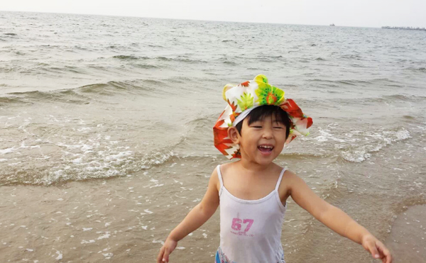 拍了照片后,突然讓我感覺像文清同學媽媽去澳門時住在海景房拍的海景照片! 看完海景就開始了匆忙的換泳衣準備下海,海景公寓的好處就是出來小區走上自己的棧道就是小區的私家海灘,非常干凈。近距離的接觸大海,吹著涼爽的風(天氣多云,溫度在29度),讓我們一行幾個馬上開懷起來,每個人的興奮在臉上流露。孩子是最興奮的,跑到海邊上,任憑海浪一層層的打過來(這天風并不大),孩子說:“媽媽,你看大海碰我了!”竟然用起了擬人句,把大海打過來的浪花比作在“碰”,這字用的多么美妙。∥乙贿呅蕾p著美景一遍在咂摸著這話,贊嘆著孩子的天真和用詞之妙。我們真的跳入大海浸泡的時候,舅舅在照顧著她,突然一個浪打在了孩子的頭上,孩子嚷著:“我要離開大海了”,這是在身邊的舅舅轉告我的,我在想孩子真是長大了,會表達很多個人的感情了,“啊,我要離開大海了”是一個陳述句,但是好像是表達著一種不舍得離開但是有不得已的感情,她很想在大海里再待一會,但是因為她被浪花打濕了頭發,依她個人的膽量可能害怕了,所以說了句“啊,我要離開大海了”,孩子的成長讓我們自覺不自覺真切感受到了。然后她自己在海灘玩沙子,挖了大大的沙坑,每當海浪沖過來的時候,總是興奮的說:“媽媽大海幫我大忙了,還給其他家人也興奮的嚷嚷,大?墒菐土舜竺α恕。當我問她到底幫了什么忙時,她說:“大海給我的沙坑送來了水啊”(估計是她不用拿著自己的小碗去海邊舀水了)。我感嘆著女兒的天真浪漫和快樂興奮,內心在想:帶著孩子出來玩玩是多么對的選擇,大自然的風光的確是能刺激人的靈感,說了那么多令我平時聽不到的妙字妙語。這趟短途旅行意義非凡!